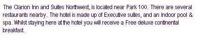 A continental breakfast is offered at the Clarion Inn & Suites Northwest. The restaurant Subway is situated relatively near the property.